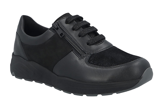 Újdonság! Az M szélességű Mia fűzős cipők még több helyet kínálnak az elülső részen – az oldalsó cipzár gyors fel- és levételt tesz lehetővé.A fűzővel optimálisan ráállítható a lábra. Ezenkívül a masszív és vízálló TPS talp 35 mm-es sarokkal biztonságosan megtámasztja a lábat, és kényelmes járásérzetet biztosít. Mint minden Berkemann- Solidus cipőnél, ennél a sportcipőnél is lehetőség van az anatómiai talpbetét eltávolítására és akár saját ortopéd betétek behelyezésére. Ez a cipő EXTRA M- széles,( ortopédiai szélesség) így kimondottan széles lábra a ajánljuk!!!